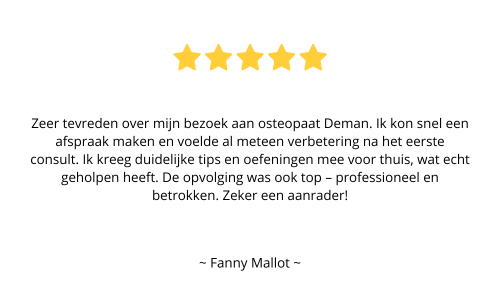 Voor meer reviews verwijzen we u graag naar het Deman Health google profiel, en naar het Deman Osteo profiel voor onze werkzaamheden in Londen
